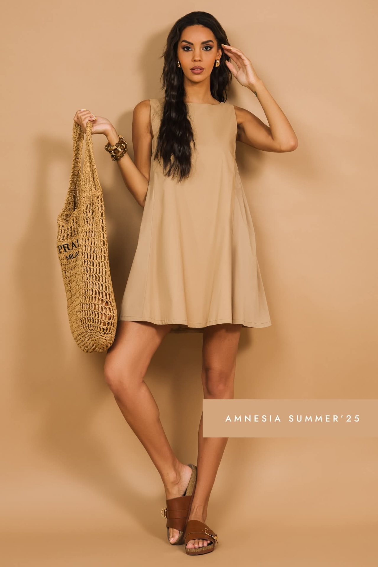 A letisztult, A-vonalú fazon és a természetes len anyag teszi az AMNESIA Radon ruhát tökéletes nyári alapdarabbá. Fekete és wet sand színben is elérhető – viseld sportos szandállal a hétköznapokon vagy dobd fel statement ékszerekkel estére – tedd kosárba az amnesia.hu webshopon, amíg elérhető!