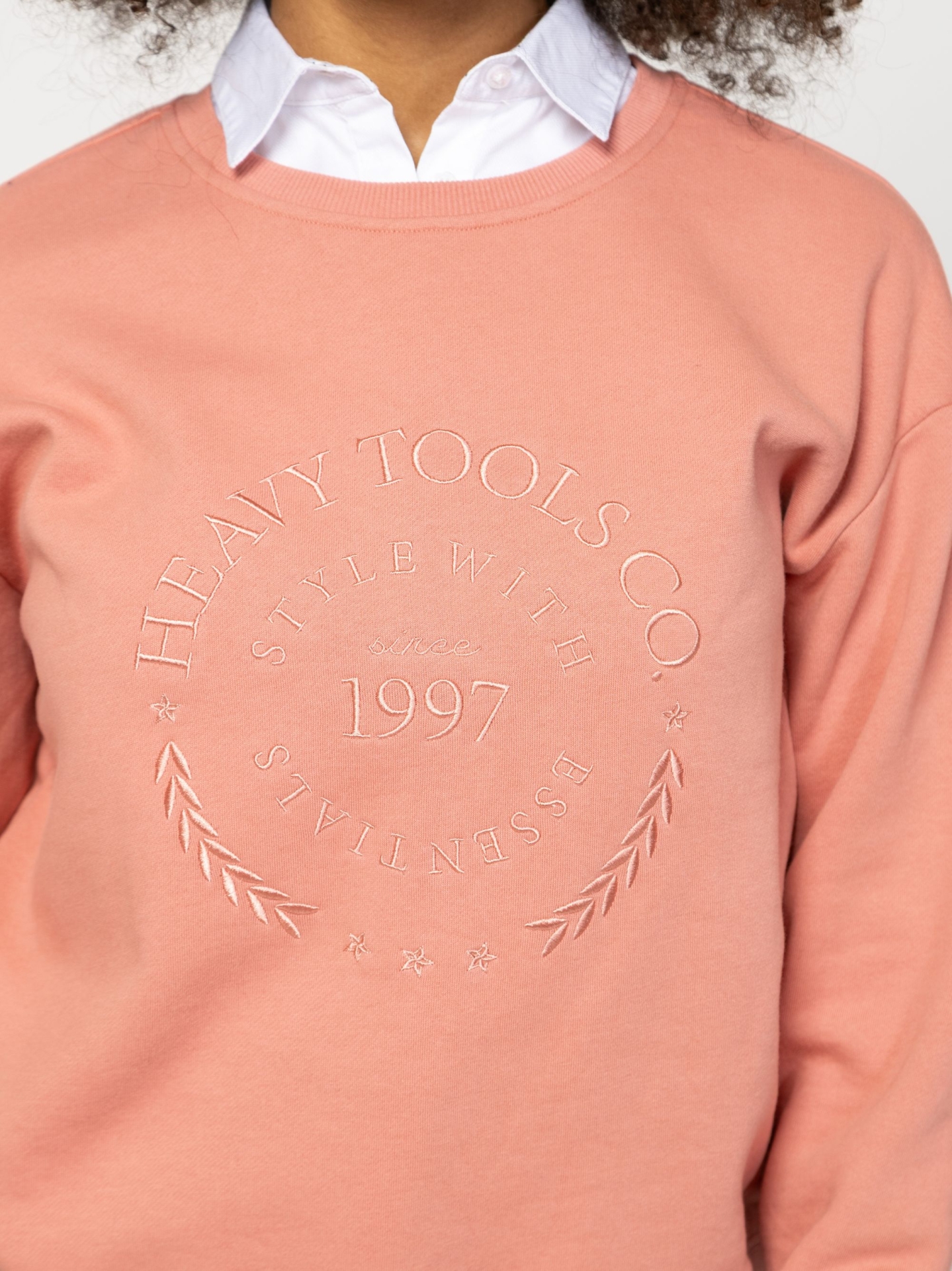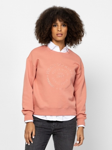 ői pulóver, kerek nyakkal, bővebb szabással, ejtett vállal, bordás passzés aljjal és kézelővel, magas pamut tartalmú anyagból, nagy hímzett márkajelzéssel az elején, szövött címkével az oldalában. Anyaga: 80% pamut, 20% poliészter, belül bolyhozott fleece.