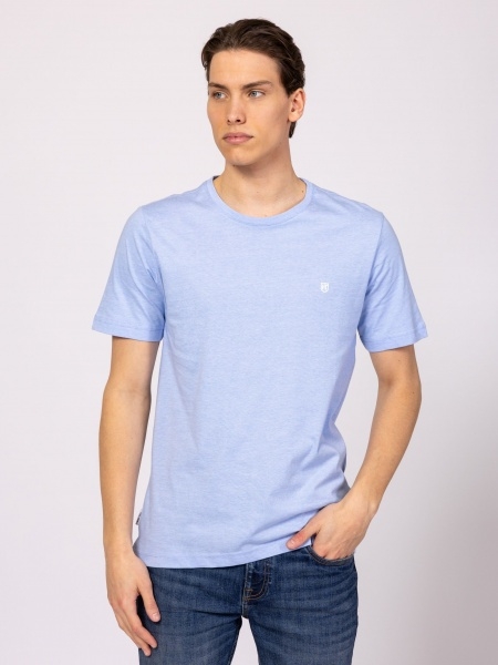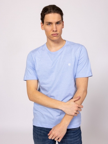 Férfi rövid ujjú póló, egyenes szabással, kerek nyakkal, vékony csíkos anyagból, elején és oldalán kis szövött márkajelzéssel. Anyaga: 100% pamut, csíkos jersey