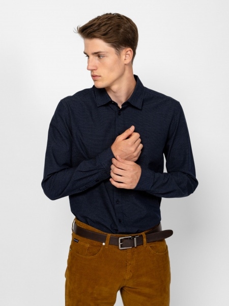 Férfi hosszú ujjú ing, comfort fit szabással, szépen kidolgozott gallér és mandzsetta megoldással, elején kis hímzett márkajelzéssel. A tiszta pamut anyag kellemes érzetet biztosít akár egész napos viselet során is. Anyaga: 100% pamut.